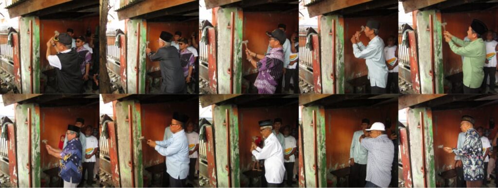 Gambar 4. Pimpinan PDM dan Pendiri Mushola At-Taubah melakukan penghancuran dinding secara formalitas